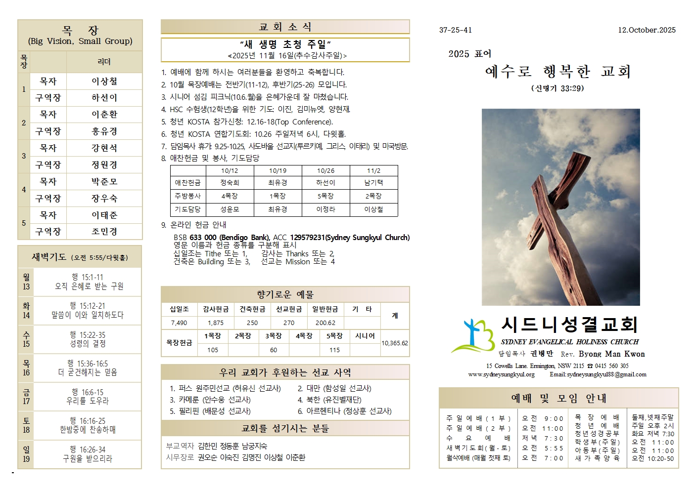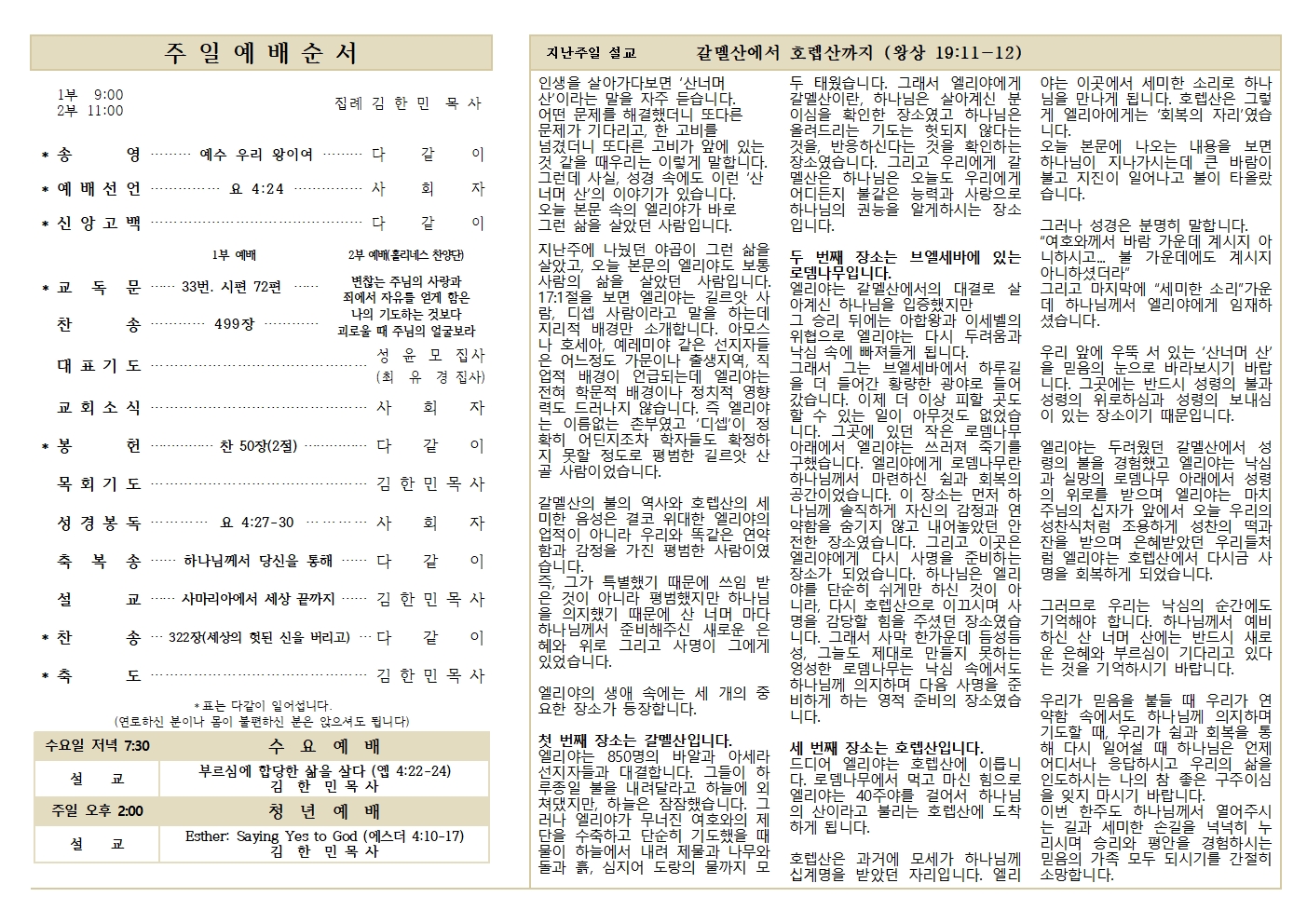 10.19 예배순서와 교회소식